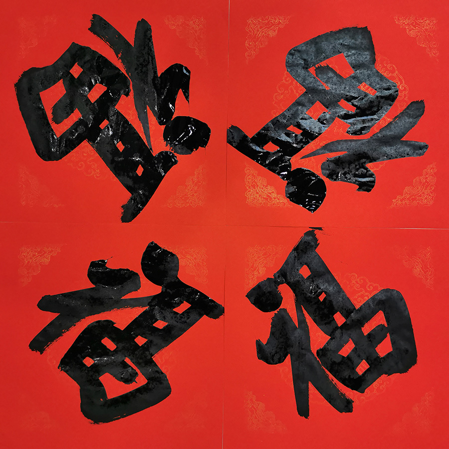 进入一楼大厅未见其人,就会闻到阵阵的墨香飘来,书画台上,笔墨纸砚一应俱全,书画家们神情专注,现场挥毫泼墨大到横竖撇捺,小到一个点都一丝不苟,起笔如行云流水,收笔如秋风落叶,一起一收间不同形态的“福”在书画家的笔下一气呵成。14名书画家书画作品风格迥异,行书、草书、隶书篆书、楷书各有擅长,大家可以根据自己的喜好向书画家们求取。