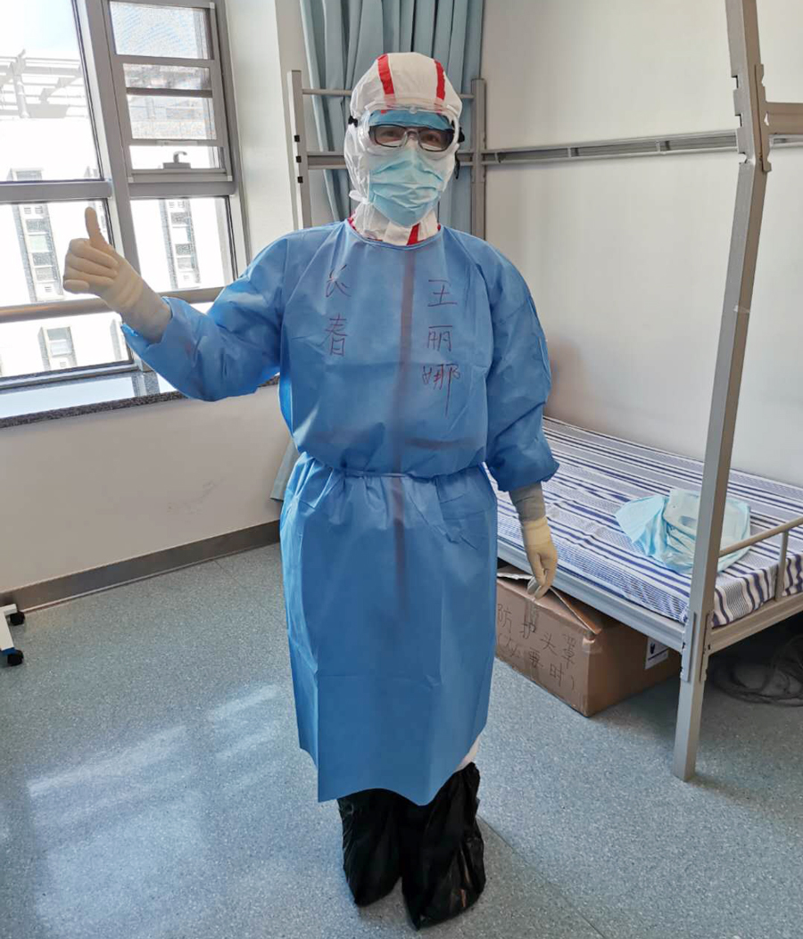 2月12日11时,带着吉林人民、医院领导、同事、家人和朋友的嘱托,我们一行12人踏上了征程。在飞机即将抵达武汉时,乘务长哽咽地说:“你们是最美的白衣天使,希望疫情结束,我们还能一个不少地把大家接回家”。22时,飞机落地,尽管我已经做好了充分的心理准备,但当真正踏上武汉这片土地时,还是愕然了。大厅里除了几个工作人员,几乎空无一人。到处散发的消毒水味道以及听不懂的方言,提醒着我们,这里,是受伤的武汉!