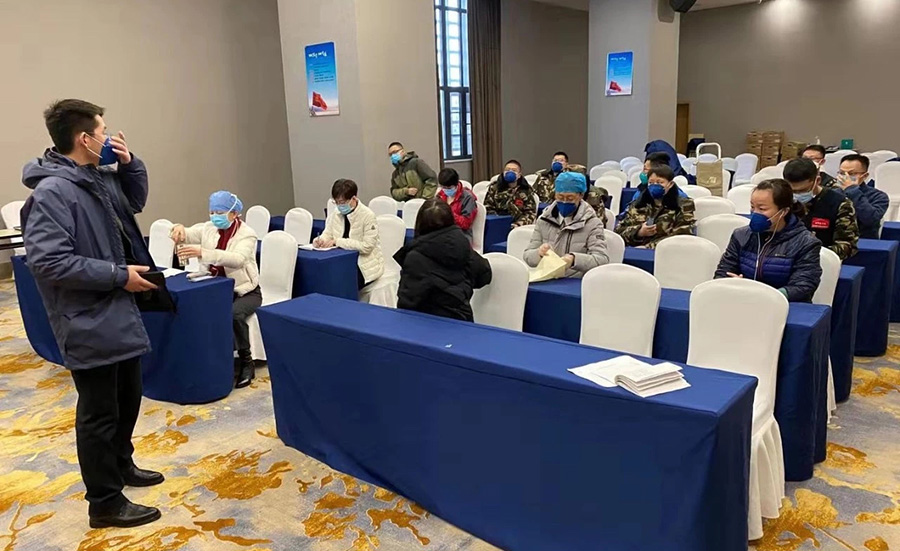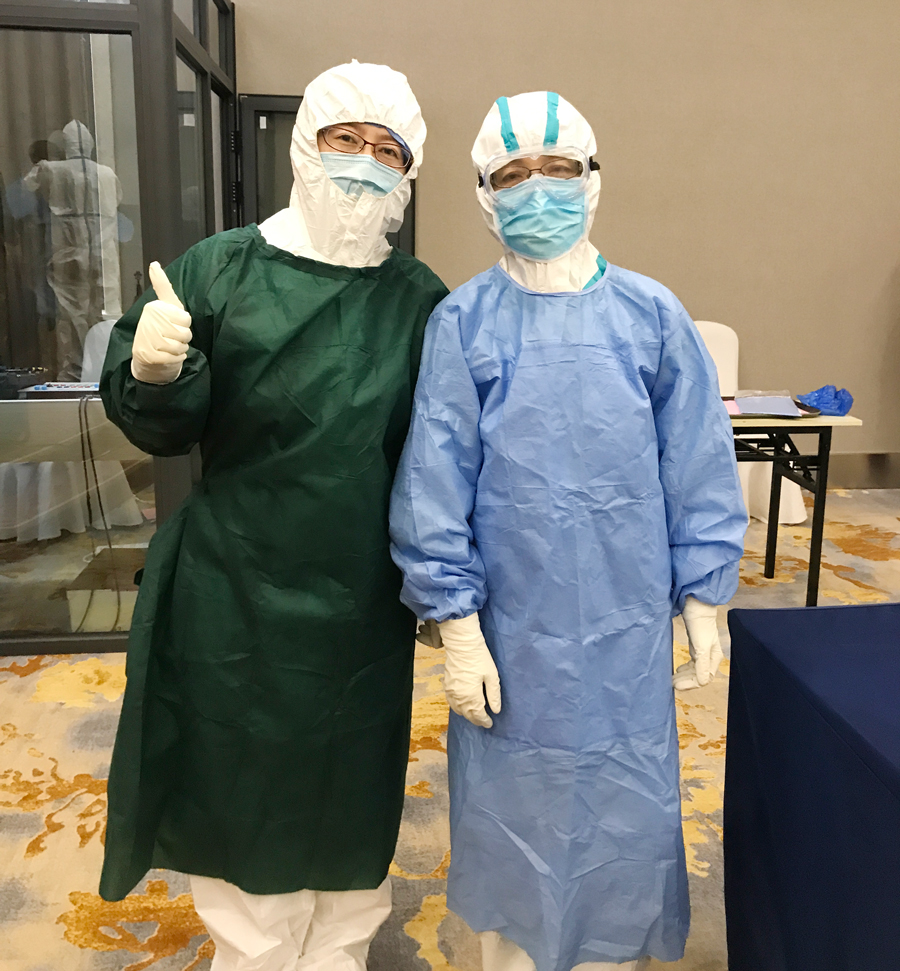 我们12人的中医医疗队需要补充到吉林省援鄂危重症救治(第三批)医疗队里,承担华中科技大学附属同济医院中法新城院区的一个重症病房的救治工作。到达驻地酒店,分发完行李已经是半夜。此时的武汉是阴冷的,但我们个个心潮澎湃,热血沸腾。第2天的培训会上,大家对个人防护练习得格外认真,这不仅仅是简单的几层衣服,可以说关乎着我们的生死,是我们上战场的重要保障。每一个人都在认真地练习,相互地提醒,生怕哪一个步骤不够规范。回到酒店后反复观看视频,在头脑中回想每一个细节,务必做到安全、有效地开展救治工作。