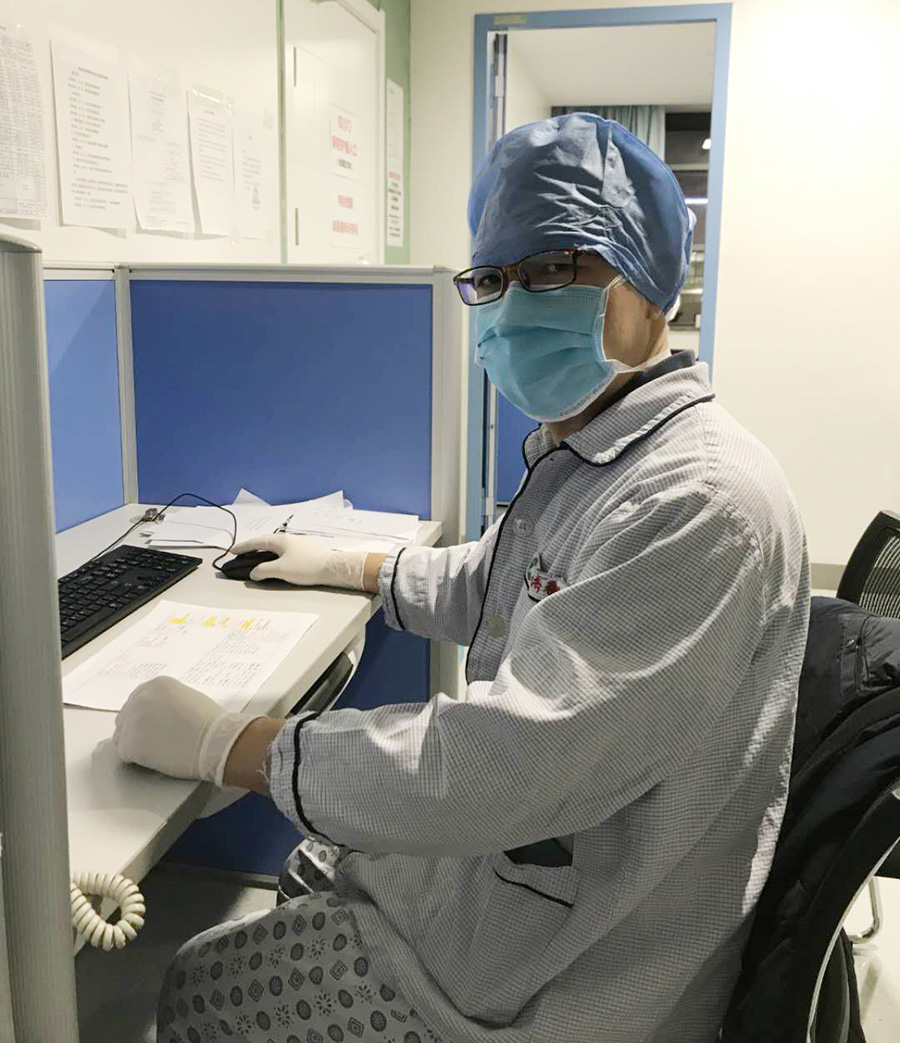 我所在医疗组负责一个50张床位的疗区,早8点到16点、16点到24点、24点到次日8点三班倒,各组轮流值班查房、下医嘱、申请各种化验检查、制定病例、交班穿上,密不透气的防护服,虽然憋气、呼吸不畅快、行走困难,但所有医护人员却步履匆匆,一刻不停地处理着各项工作,还要时刻保持高度警惕,随时观察每一个患者的病情变化,随时准备与死神展开决战。很忙碌,但很有序慢慢地,我开始习惯这种节奏。