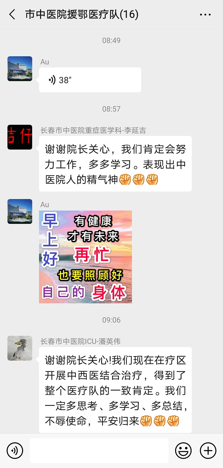 孙良金院长的细心体贴,令援鄂医务人员感受到了组织的关怀。他还时常牵挂前方的医护人员,并告诉党办、医务科、护理部要经常与她们沟通,及时了解前方人员的思想、工作以及家里的情况。在妇女节前夕,他利用微信隔空送去祝福语,亲切的问候、关怀的话语,让远在千里之外的医护人员感受到来自家乡的浓浓温情。