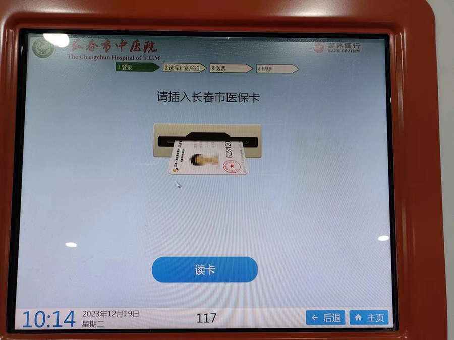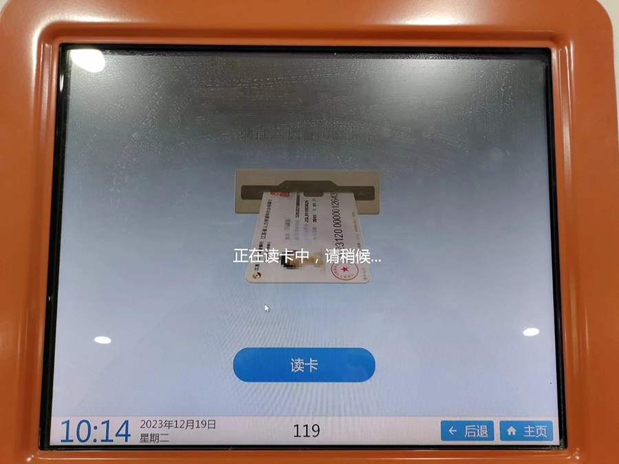 4.使用医保卡进行挂号患者,将医保卡插入机器对应位置进行读卡