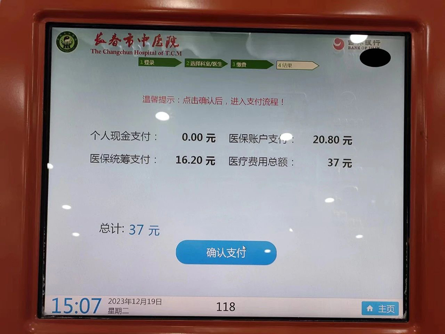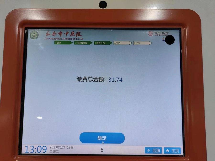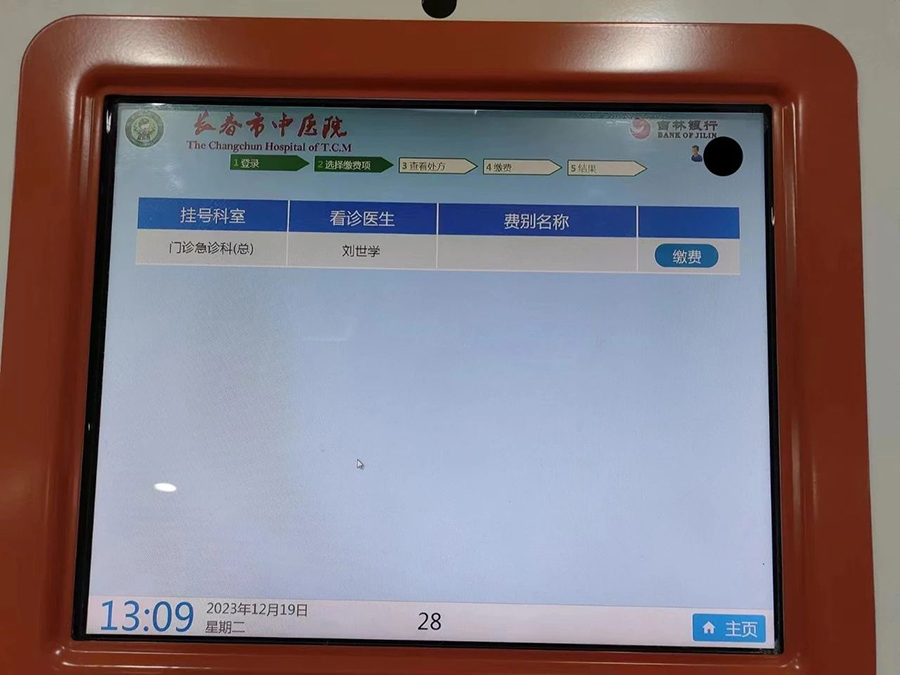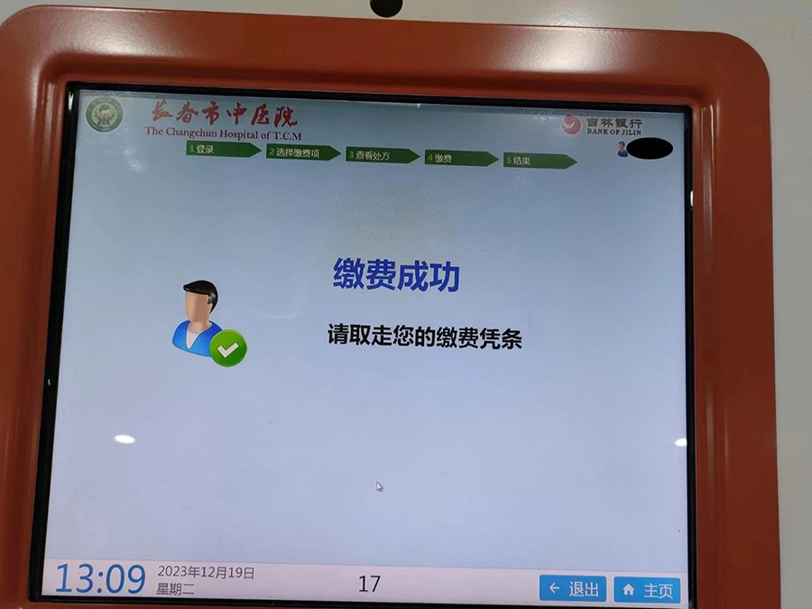 10.支付成功后,自助机会将缴费凭条打印出来,患者拿上缴费凭条前往对应科室进行后续治疗