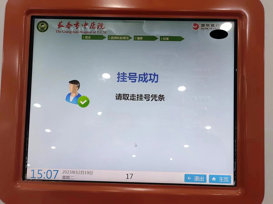 12.支付成功后,自助机会将挂号凭证打印出来,患者拿挂号凭证到门诊科室进行就诊