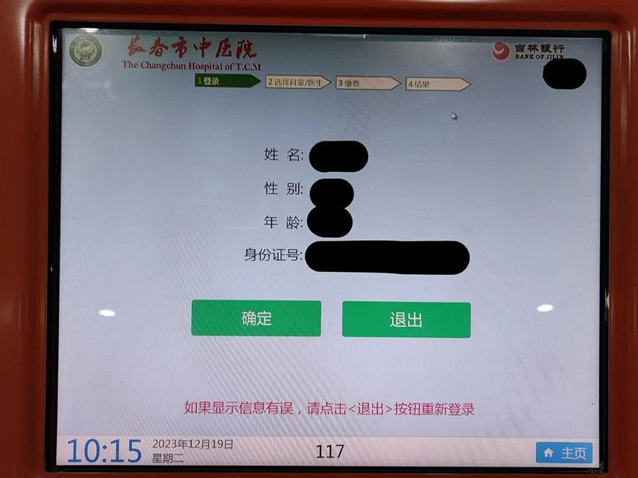 7.读卡成功,会显示患者信息,患者进行校对后点击确认进行下一步