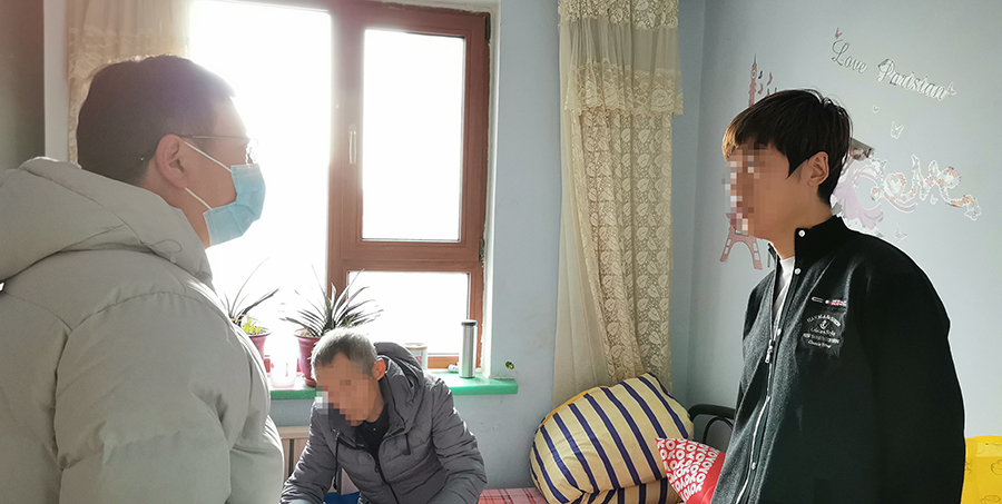 12月22日,袁鹏书记和支部宣传委员潘英伟来到韩先生家中,仔细询问了家中情况和父子二人的病情,尤其是针对韩父的胸腔积液,给出了专业的建议,并鼓励老人树立信心,战胜病痛。袁鹏书记说:“作为医务工作者,我们要通过专业知识来守护你们的健康,这次为你们带来了医院治未病中心的体检卡,希望你们树立信心,战胜疾病。”最后,袁鹏书记还嘱咐韩先生,一定保重身体,照顾好老人。