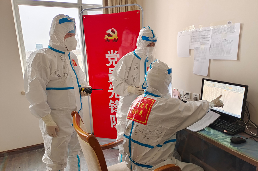 隔离人员中,有一位9岁的小姑娘。医生董玉柱查房时,总会给她带去牛奶、水果和面包。“她正在长身体,一定要多吃一些。”董玉柱这样说。工作中,董玉柱听到最多的不是抱怨,而是“辛苦了,谢谢你们”。短短几个字,道出了隔离人员对所有防疫工作者工作的肯定、感谢和理解,也体现了党员的岗位价值和责任。