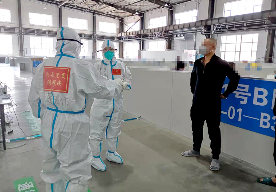 为充分发挥党员先锋模范作用,确保方舱各项工作有序高效开展,卡伦方舱医院在“疫”线成立了临时党支部,潘英伟任组织委员,并用行动让党旗在抗击疫情的最前线飘扬。一个党支部就是一座堡垒,临时党支部的党员们拧成一股绳,佩戴“我是党员,有事您找我”的标志,身先士卒的精神,鼓舞着身边的医护人员,也为患者带来温暖。