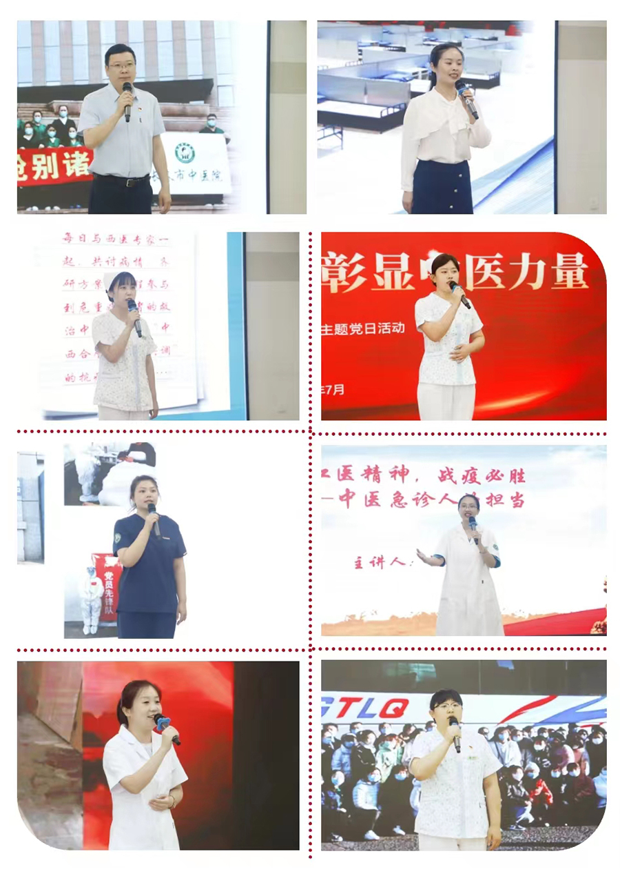 12个铿锵的声音,12个温暖的故事,是每一位“抗疫战士”负重奏响的凯歌,更是中医人初心如磐、传承红医精神的一份决心。为弘扬红医精神、突出榜样力量,7月6日13时30分,在色情片 总部4楼会议室内,由院党委组织召开的“传承抗疫精神 彰显中医力量”——“战疫中的你和我”故事会如期举行。12名来自8个党支部的选手,动情讲述战疫一线亲历者的医者大爱,用实际行动庆祝中国共产党成立101周年。