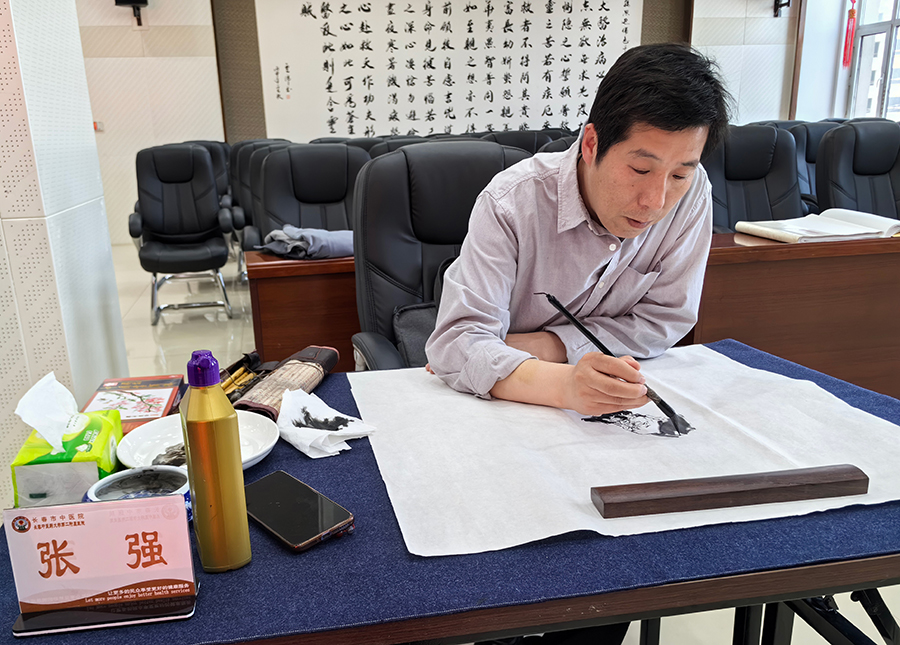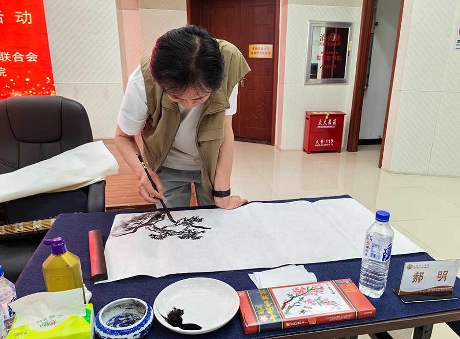 另一边,书画艺术家们正全神贯注地投入到创作中。他们或立或坐,或沉思或挥笔,在宣纸上用细腻的笔触映照出脑中灵感的火花,用书画作品描绘出杏林的生机与活力,将艺术的魅力与医务工作者的辛勤工作完美融合。随后,艺术家们亲手将作品赠予医护人员,传递着敬意与感激。艺术家们创作的书法、绘画作品,不仅是对市中医院全体人员辛勤工作的认可与鼓励,更是为医院70周年庆增添了浓厚的文化底蕴和艺术气息。这些作品将激励医护人员继续担当奉献,守护百姓健康,书写新时代医者荣光。