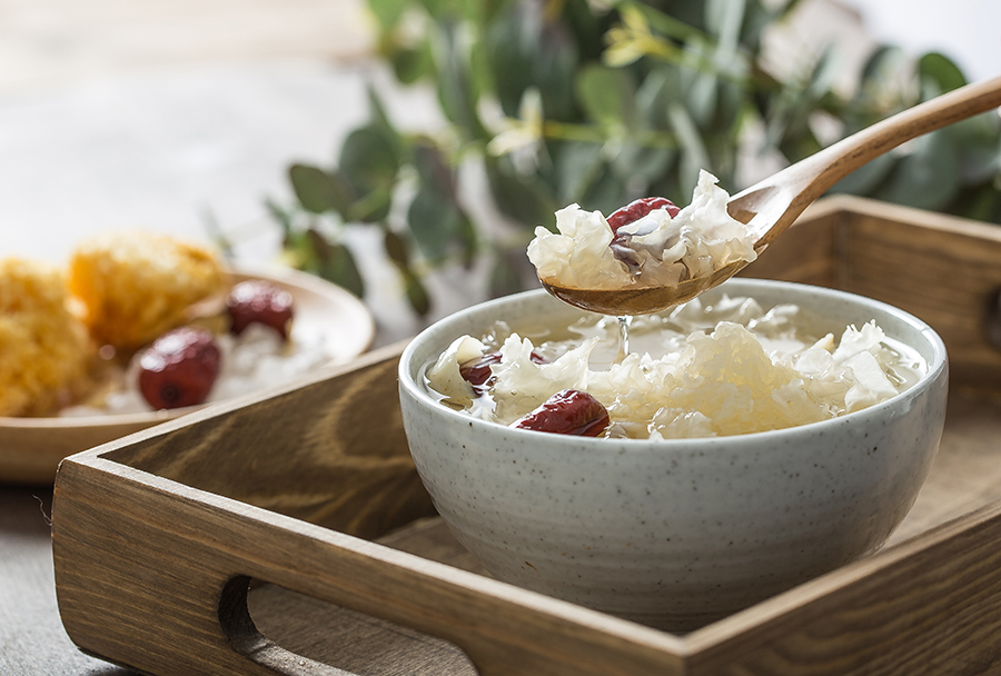 做法:将秋梨洗净去核切小块,加入水发银耳、百合和冰糖,放入碗中蒸1小时后食用。