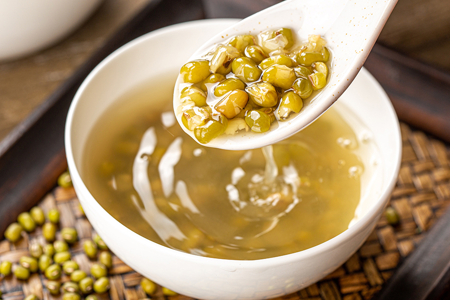【做法】薏仁、绿豆均洗净,加水泡3小时备用。锅中倒入800毫升水,加入薏仁及绿豆,以中火煮开,小火煮半小时,再加入薄荷及冰糖继续煮5-10分钟即可食用。