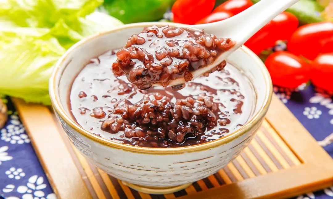 【做法】黑米淘洗干净,浸泡5小时;大米洗净,浸泡30分钟;红枣洗净、去核;枸杞子洗净。锅置火上,放入黑米、大米、红枣和适量清水,大火煮沸后转为小火熬煮成粥,再加入枸杞子煮5分钟,用白糖调味即可。