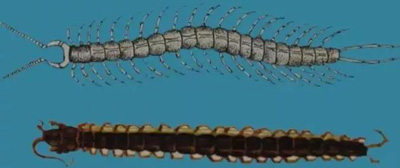性状鉴别:本品呈扁平长条形,长9~15cm,宽0.5~1cm。由头部和躯干部组成,全体共22个环节。头部暗红色或红褐色,略有光泽,有头板覆盖,头板近圆形,前端稍突出,两侧贴有颚肢一对,前端两侧有触角一对。躯干部第一背板与头板同色,其余20个背板为棕绿色或墨绿色,具光泽,自第四背板至第二十背板上常有两条纵沟线;腹部淡黄色或棕黄色,皱缩。自第二节起,每节两侧有步足一对;步足黄色或红褐色,偶有黄白色,呈弯钩形,最末一对步足尾状,故又称尾足,易脱落。质脆,断面有裂隙。气微腥,有特殊刺鼻的臭气,味辛、微咸。