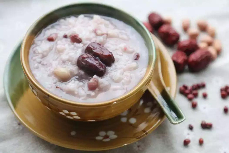 【原料】红枣10枚,花生50克,山药1根,大米100克。