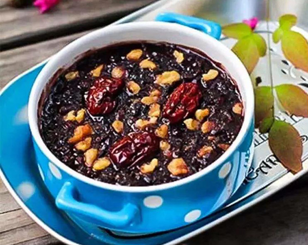【做法】粳米和红枣先用旺火烧沸,然后改用小火熬煮;待米粥烂熟,调入磨好的黑芝麻粉及白砂糖,再稍煮片刻,即可食用。