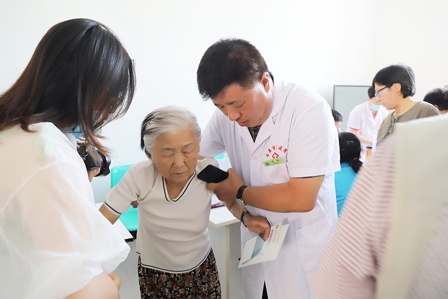“我给您做一次针灸吧,能缓解您的腿疼。”这次义诊,骨科医生带来了针灸。“大夫,您按的地方,平时都疼,您找穴位真准。”很多村民都是第一次针灸,平时只听说过中医针灸厉害,这回专家到眼前了,一定得体验一次。从8点半多一直到11点半,来参加义诊的村民得有上百位了。