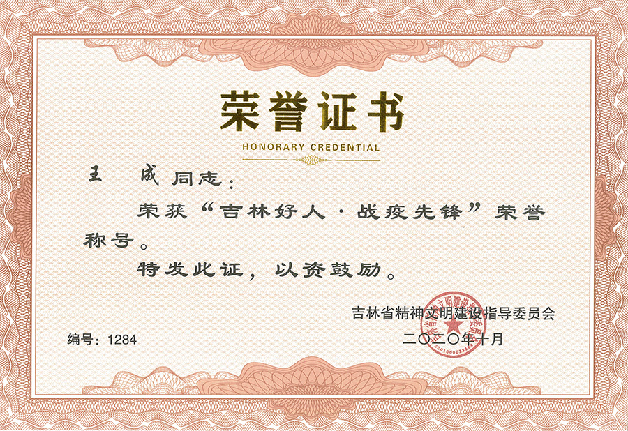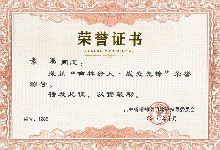 为大力弘扬在抗击新冠肺炎疫情中形成的生命至上、举国同心、舍生忘死、尊重科学、命运与共的伟大抗疫精神,广泛宣传先进典型的感人事迹,充分激发全省人民干事创业的责任感使命感荣誉感,吉林省精神文明建设指导委员会评选发布一批抗击新冠肺炎疫情中涌现出的先进典型。经基层推荐、网上展示投票,色情片 4名职工获得“吉林好人·战疫先锋”荣誉称号。他们分别是: