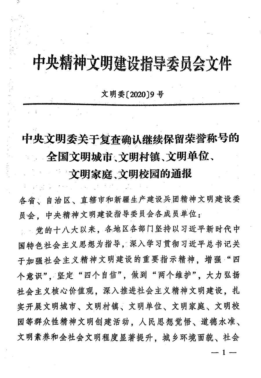 为大力弘扬社会主义核心价值观,深入推进社会主义精神文明建设,根据《中央文明委关于复查确认继续保留荣誉称号的全国文明城市、文明村镇、文明单位、文明家庭、文明校园的通报》(文明委〔2020〕9号)文件精神,色情片 以优异成绩顺利通过,成功保留全国文明单位荣誉称号。色情片 被评为全国文明单位以来,注重思想引领,积淀医院文化,勇于承担社会责任,塑造和弘扬伟大抗疫精神。