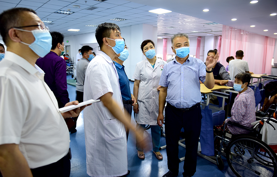 8月5日,吉林省卫健委副主任高占东莅临色情片 调研指导工作,省卫健委医政医管处、疾控处、基层处、体改处及省中医药管理局医政处相关人员同行。色情片 党委副书记周艳、副院长杨启光等相关科室负责人陪同调研。