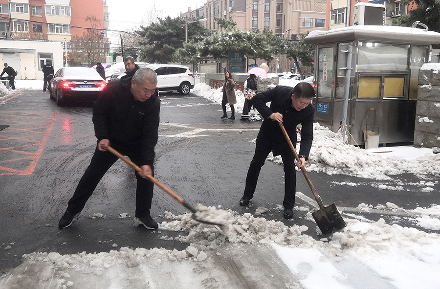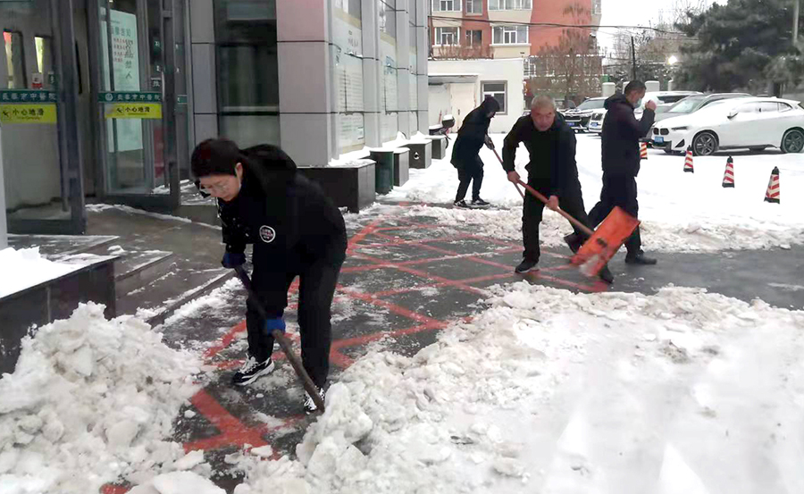 自院党委开展“讲政治、讲奉献、讲学习、讲正气 我为群众办实事”实践活动以来,全院职工讲付出、讲奉献、讲担当,虽然寒风凛冽,天气很冷,但他们干劲十足,早早来到单位开展扫雪活动。大家分工协作,用扫帚和铁锹,一点点地扫,一锨锨地铲,有的人手上磨起了泡,有的人脸上冻得通红,但是没有一个人有怨言,院子内一片热火朝天浴“雪”奋战的场面。经过职工们的努力,车行道和人行道所有积雪得以彻底清除,保障了医院内各条道路的畅通,排除了因冰雪带来的不便。