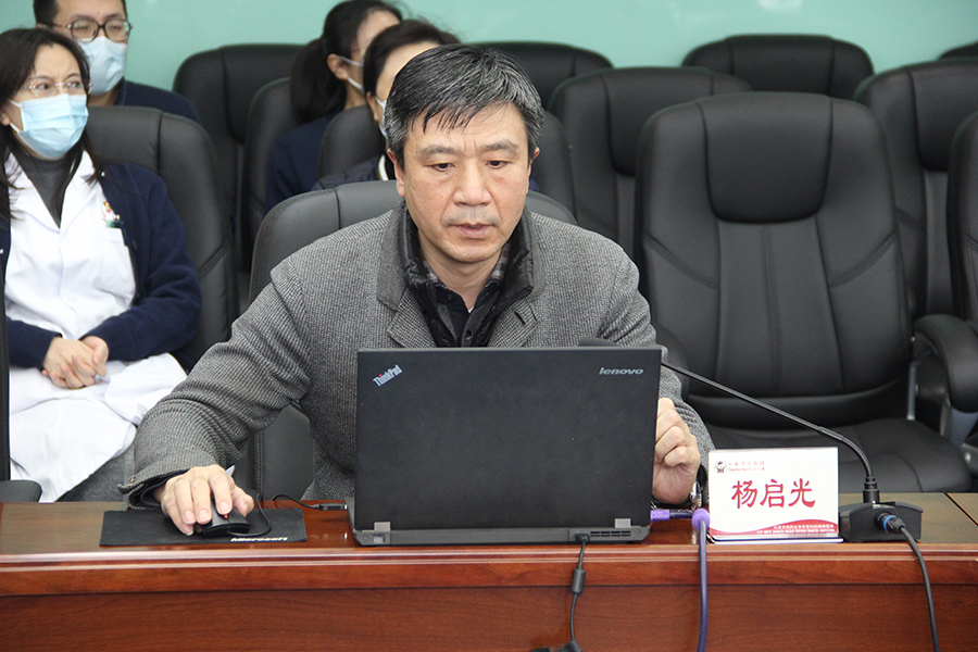 座谈会上,杨启光从医院的基本情况、实习生工作、研究生工作和教学问题等方面进行了汇报。