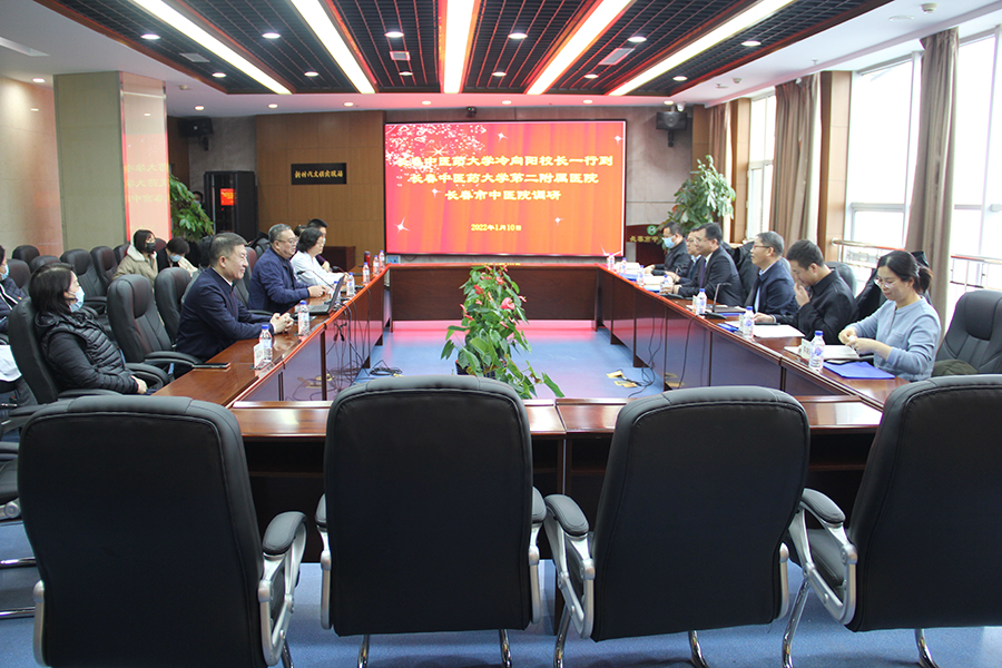 1月10日下午,长春中医药大学校长冷向阳,副校长李磊、王洪峰,校长办公室主任王兴铭,科研处处长李光哲,研究院副院长李瑞丽,教务处实践教学管理科张伟莹一行7人到色情片 (长春中医药大学第二附属医院)进行调研。色情片 党委书记、院长孙良金,党委副书记周艳,副院长杨启光、石贵军、钱锐,纪检委书记杨宏彦和总会计师桑玉梅等相关人员陪同调研。