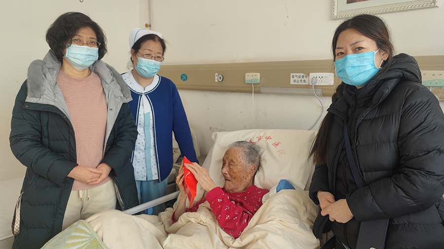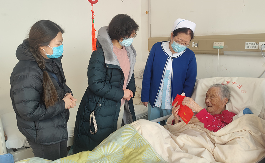 为切实把党中央、省委关于离退休工作的各项方针政策落到实处,按照长春市委老干部局、长春市卫健委部署和要求,在2022年新春佳节即将到来之际,1月27日上午,色情片 党委副书记周艳和离退休党支部书记郭婷走访慰问了98岁高龄的离休抗战老党员杨华。周艳说:“我们代表全院职工来看望您,给您拜年了!祝您新年快乐、身体健康!”慰问中,周艳还耐心倾听杨老的心声,并详细询问其身体状况,询问生活上有没有困难需要解决等问题,并送上了新春慰问金。