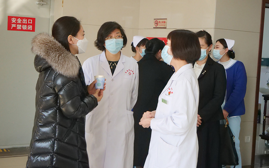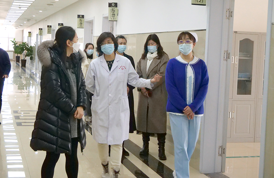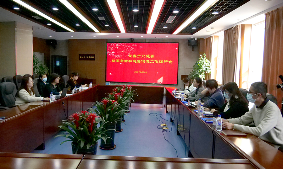 2月24日下午,长春市卫健委宣传处处长金小鸥一行来到色情片 ,就宣传和健康促进工作进行了调研。色情片 党委副书记周艳、纪检委书记杨宏彦、党办主任王雪姣等陪同调研。