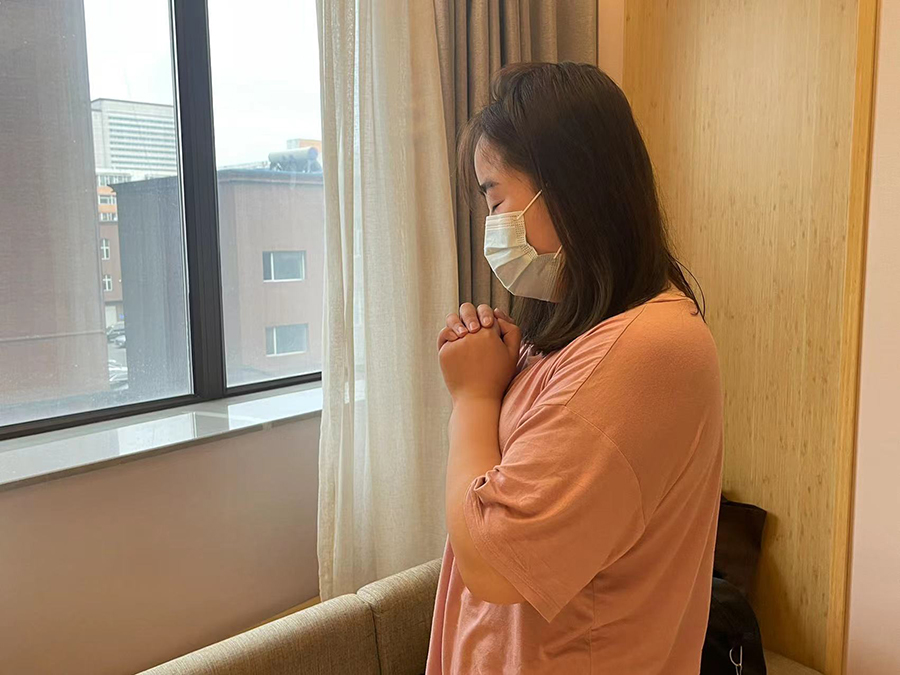 ▲张琦为自己父亲祈祷
