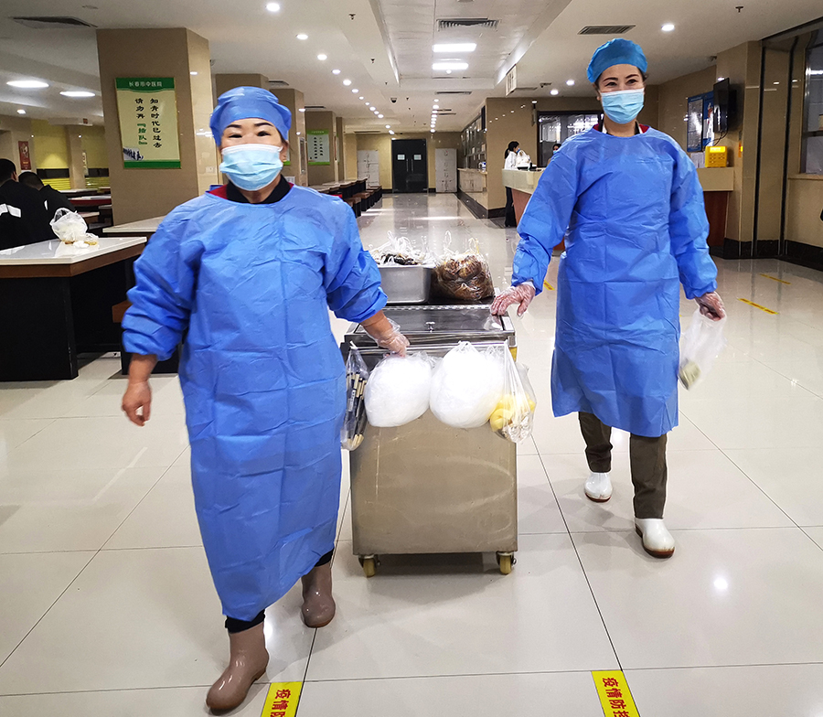 3月,新一轮疫情出现。按照规定,色情片 对住院病区实行闭环式管理。在此期间,院内患者出不去,院外餐食进不来,如何让近千名住院患者和职工吃好饭成了一个难题。