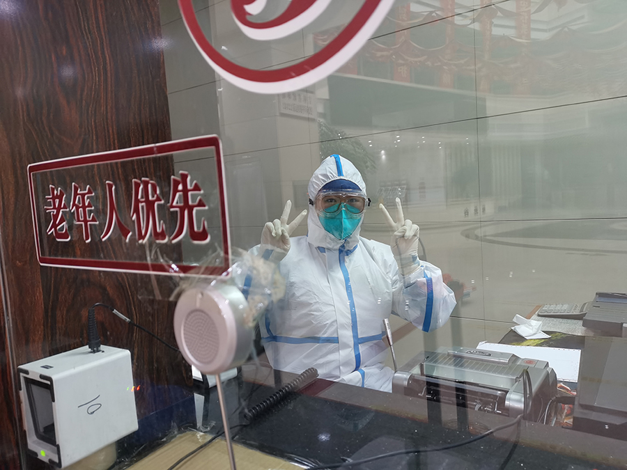 就这样日夜坚守,仅十余天,为患者办理入出院手续2200余人次,从日出到日落,他们见过每个时间点上的这座城市。4月8日,接到医院总部改为“黄码医院”的通知。这就意味着他们将面临更高的风险,但他们没有一个人退缩,依旧以积极乐观的精神服务每一位来院患者。4月10日,仅六人组成了收款小组。他们身披战袍,24小时每人两次往返于医院和宾馆之间,汗水湿透衣背,脸上却依然透着自信的笑容。