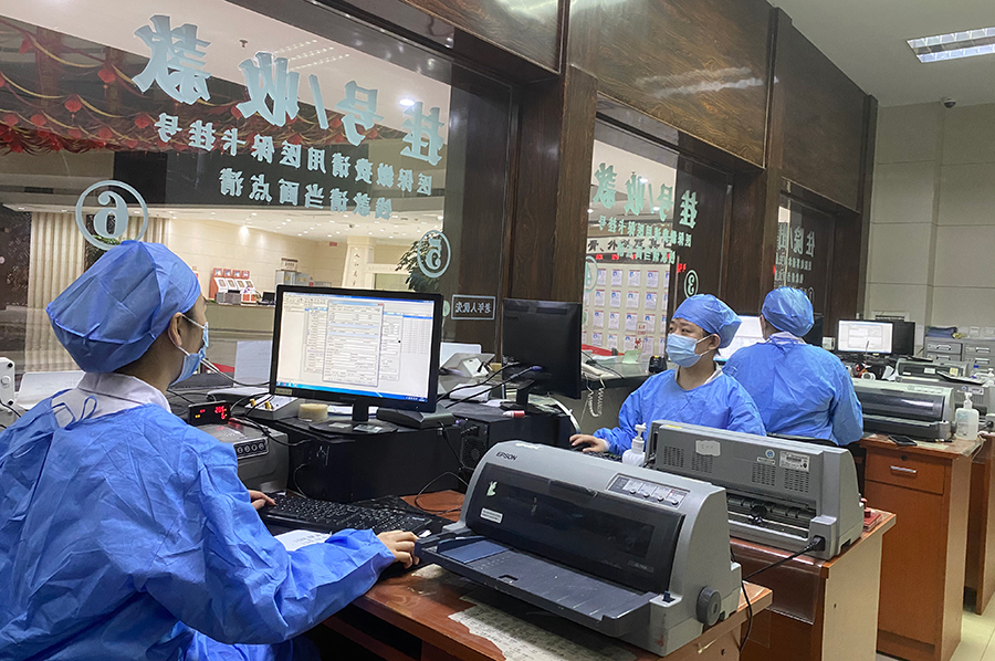 3月29日至4月4日,吉林国金方舱医院、卡伦方舱医院1号舱和2号舱相继开舱。住院处和收款处工作人员为患者进行入院、出院办理、信息校对、更改、补充医保等工作……