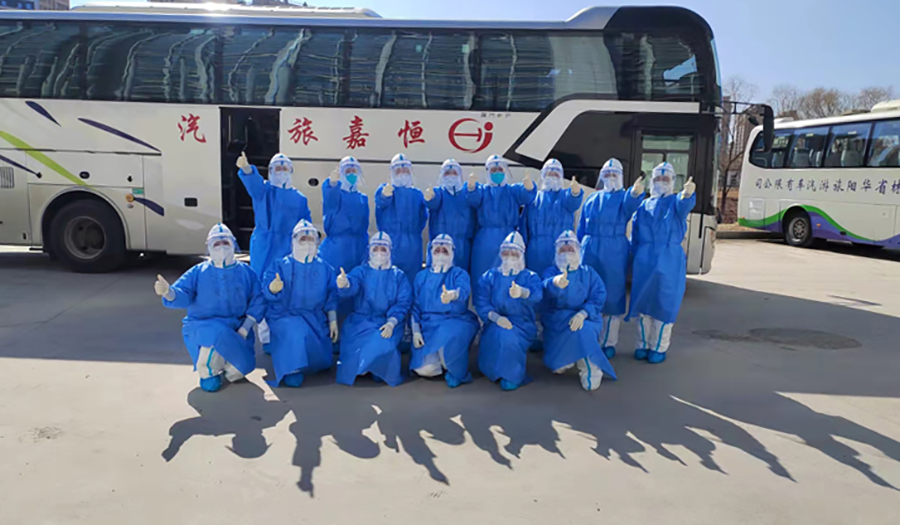 核酸采样队的队员没有固定工作时间,在舱内护理人员不足时,轮休的核酸采样队队员则需进舱配合舱内护士完成其他工作,如隔离宾馆的垃圾清运、环境采样、房间整理打扫等,哪里有需要,就顶到哪里去。“70”后队员主动分享战“疫”经验,像照顾妹妹们一样,时刻嘱咐队员保护好自己;“80”后作为中坚力量,自觉肩负着更多的责任和使命,无论是核酸采样,还是病房分餐,她们主动分担;“90”后积极尝试“新事物”,主动承担起“东软系统APP下载流程”的培训工作,与老师反馈操作中遇到的问题,并积极沟通寻求解决办法。这群“70”“80”“90”人在困难面前毫不畏惧,迎难而上,拼尽全力,无处不彰显着“中医人”的勇敢、自信、坚定与乐观。