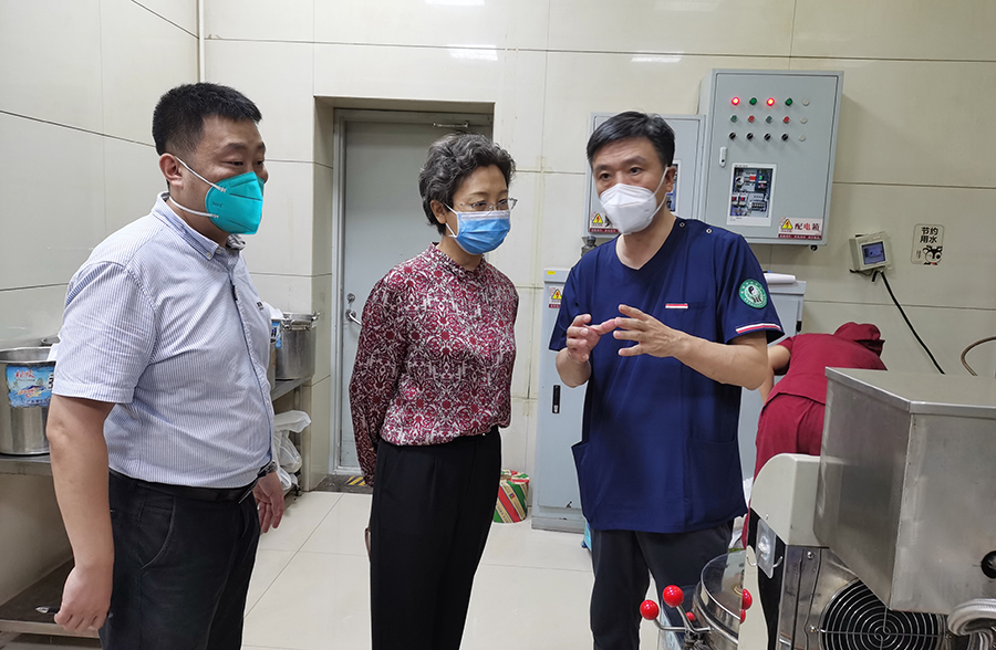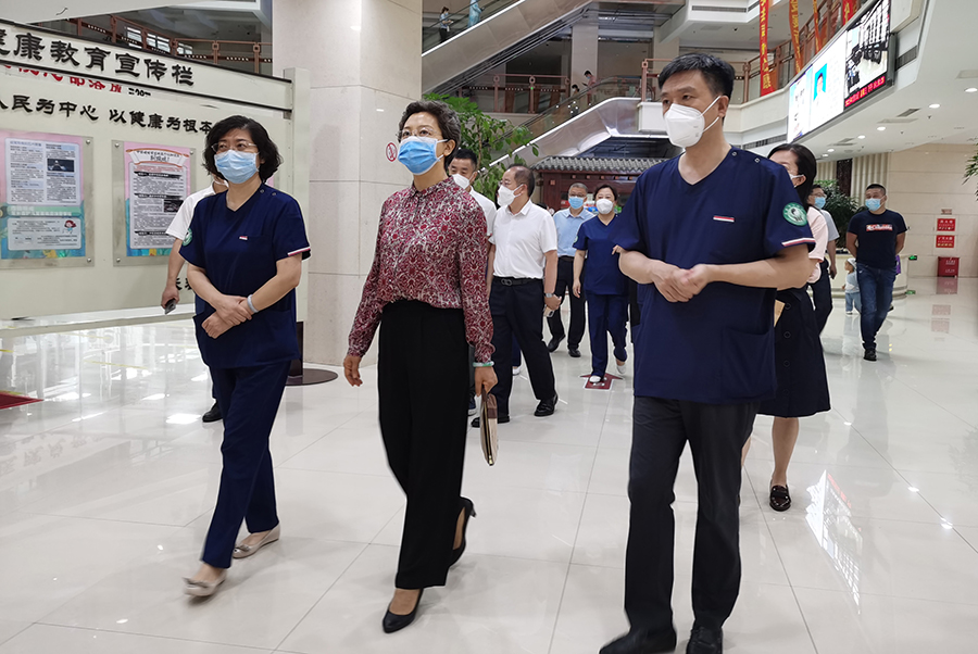 在急诊室,王桂敏对抢救中紧急状况的处理方式与急诊科主任胡少红进行交流。边走边了解,随着对医院中医诊疗了解的深入,王桂敏对“刺络放血”中医特色疗法结合西医先进设备的救治体系给予充分肯定,对“用精湛的急救技术,打开生命绿色通道”的责任与担当给予高度评价。