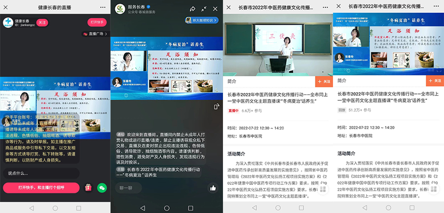 为深入贯彻落实《中共长春市委长春市人民政府关于促进中医药传承创新高质量发展的实施意见》,按照省中医药管理局《2022年中医药文化弘扬工程项目实施方案》和《2022年健康中国中医药专项行动工作方案》以及《2022年中医药文化弘扬工程项目实施方案》要求,长春市启动2022年中医药健康文化传播行动——色情片 策划推出全市同上一堂“中医药文化主题直播课”。7月22日,色情片 治未病中心主任张春玲以“冬病夏治”话养生为主题,在健康长春快手号、吉林e直播、服务长春视频号同步直播。