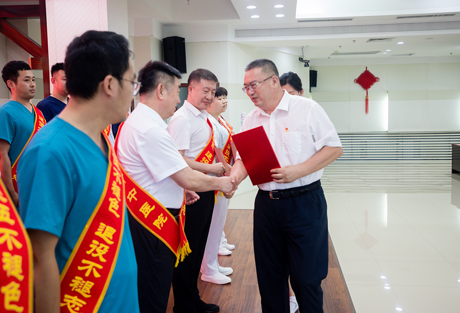 他表示,举办这次活动,希望进一步弘扬拥军拥属的优良传统,营造爱国拥军、尊重军人的浓厚社会氛围,希望17位退役军人能够立足岗位、永葆本色、践行誓言、砥砺奋进,将工作融入到服务企业、服务人才、服务基层、服务群众中来,将保家卫国的忠心化作全心全意为人民服务的热忱,继续发扬军队敢打硬仗、勇于担当、无私奉献的精神,在平凡的岗位上再立新功,为公立医院改革和高质量发展作出贡献,为卫生健康事业贡献新的力量。