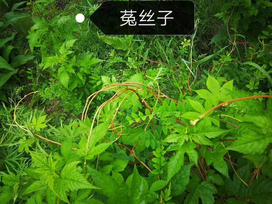 菟丝子是寄生在其它植物上的,光溜溜的藤蔓,没有叶子,是典型的不劳而获啊!