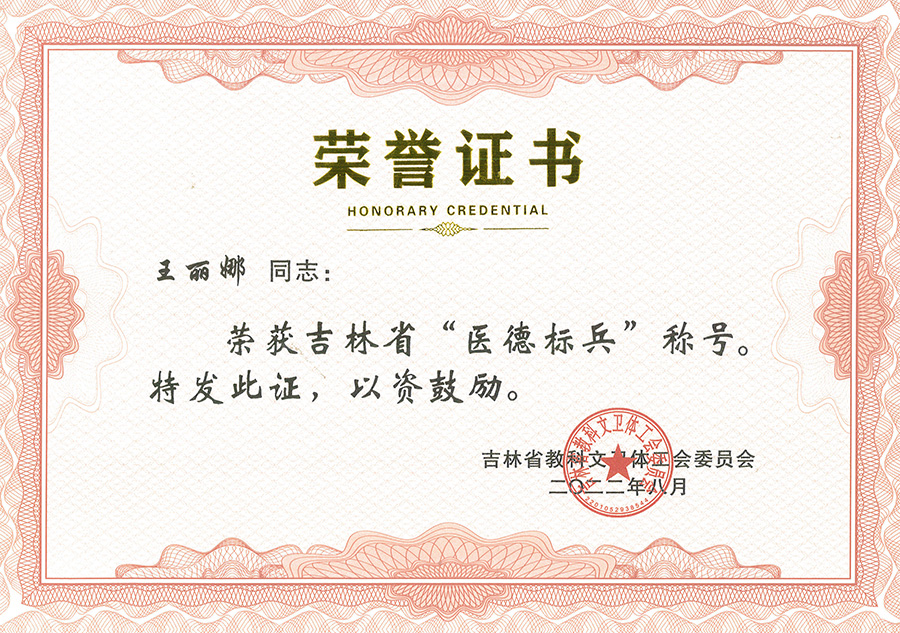 为加强职工思想政治引领,引导广大职工坚定理想信念,弘扬和践行社会主义核心价值观,强化职业道德建设,树立“不忘初心、牢记使命”的责任意识和高尚的职业道德风尚,省教科文卫体工会在全省教科文卫体系统职工中开展了“扬正气、树行风,争做职业道德标兵”活动。其中,色情片 焦志玲、王丽娜、毛宏杰、沙菲、张储弋荣获“吉林省医德标兵”称号。