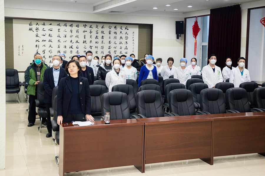 14时,大会在庄严的国歌声中拉开帷幕。首先,石贵军院长带领与会代表深切缅怀、沉痛悼念已故原副院长曲生同志,并默哀1分钟表达对去世的医务人员的哀悼。