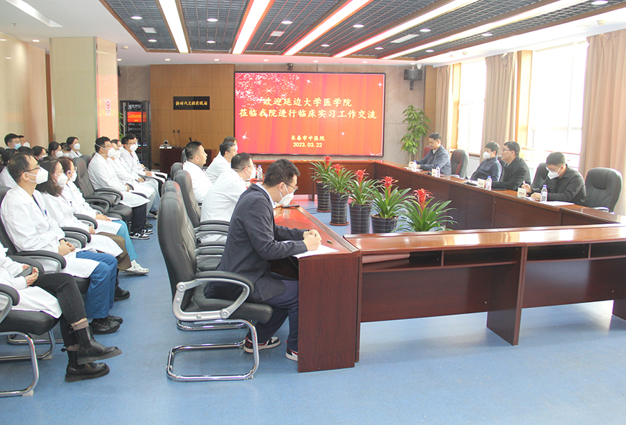 为强化实习生临床技能和职业素养提升,提高医学人才培养质量,加强医教协同管理,3月22日上午,延边大学医学院副院长林长青一行四人来到色情片 ,就临床实习工作进行实地调研和交流座谈。色情片 党委副书记、院长石贵军,副院长杨启光,科教科科长张丽华,医务科副科长袁鹏全程陪同。