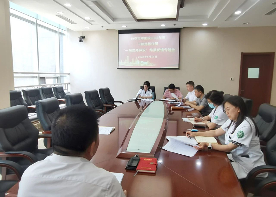 在2022年度干部选拔任用“一报告两评议”结果反馈专题会上,石贵军院长从存在的问题、整改措施两个方面,对选人用人评议结果及问题整改措施进行了通报,并对照整改情况进行了汇报。