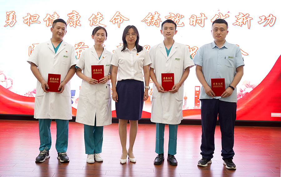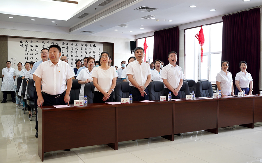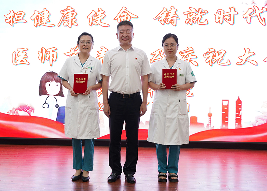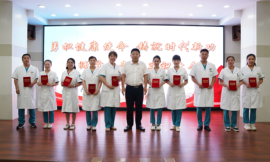 为庆祝第六个中国医师节,进一步团结凝聚广大医务工作者,在新时代新征程上不断奋进,8月18日下午,色情片 召开“勇担健康使命 铸就时代新功”医师节表彰及庆祝大会。色情片 党委副书记、院长石贵军,党委副书记周艳,副院长杨启光、钱锐、曹亚丽,纪检书记王妍,总会计师桑玉梅以及老专家代表和医师代表出席大会。