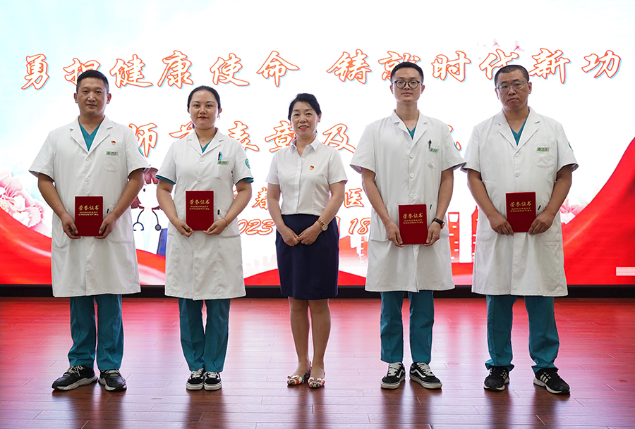 过去的一年中,全院医务工作者砥砺奋进、务实创新、奋发有为,涌现了一批优秀的医师和团体。此外,广大医务工作者还积极参加省、市以及院内的各项比赛,充分展现了市中医院人勇于拼搏、团结协作、敢于竞争的精神风貌,为弘扬中医文化、传播中医药知识贡献了力量。为充分发挥先进典型示范引领作用,激励全院医务人员继续弘扬“敬佑生命、救死扶伤、甘于奉献、大爱无疆”的崇高职业精神,激发和增强医师职业荣誉感和自豪感,医院对在业务技能、服务患者等方面有突出表现的优秀科室、先进团队及个人给予表彰。院领导分别为获奖人员和集体颁发证书。医务科科长袁鹏宣读了2023年医师节表彰名单。
