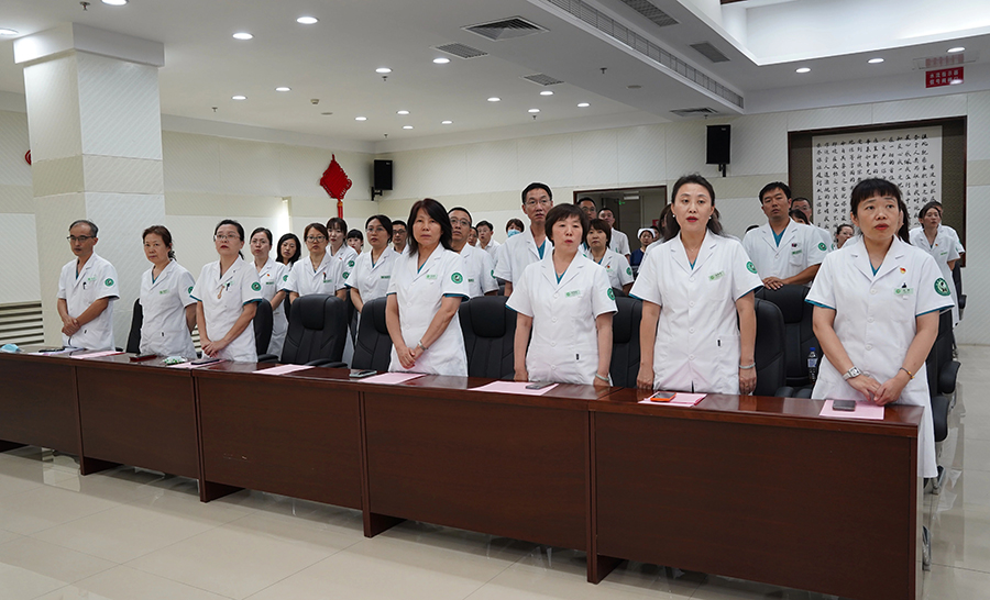 “凡大医治病,必当安神定志,无欲无求,先发大慈恻隐之心,誓愿普救含灵之苦……”会上,曹亚丽副院长带领医师宣读《大医精诚》节选片段,字字句句掷地有声,令在场的医师们心潮澎湃,更让大家坚定了为百姓健康保驾护航的神圣使命。