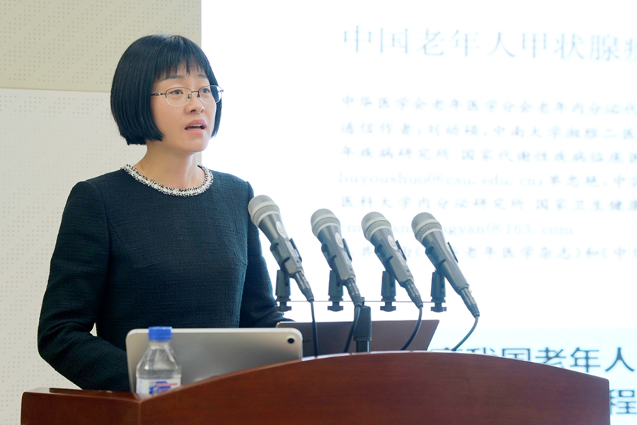 中国医科大学附属第一医院内分泌科主任医师于晓会为与会人员讲授老年人甲减的治疗。