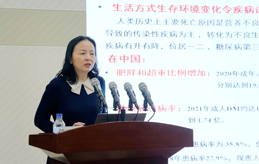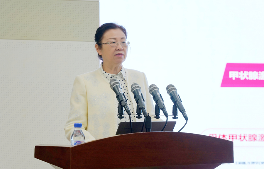 中国医科大学附属盛京医院第一内分泌科主任李玲为与会人员讲授妊娠期碘营养和维生素D的规范使用。