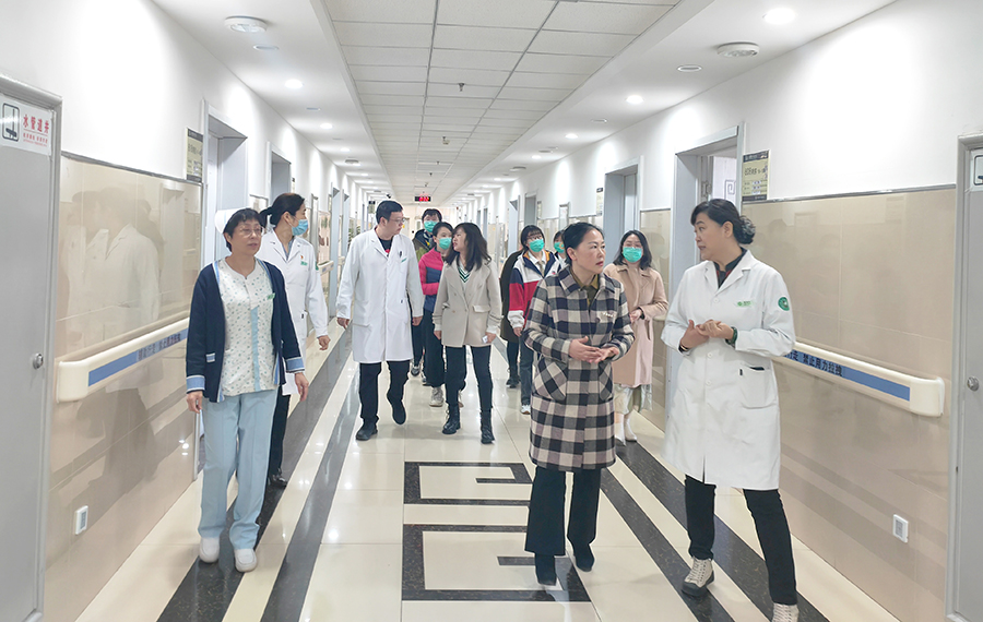 刘艳璟副书记一行先后到康复大厅和康复门诊实地参观。在康复大厅,顾树红主任向刘艳璟副书记等详细介绍大厅内的康复设备以及科室特色疗法,如特色针灸治疗、“醒脑开窍”针法、岐黄针、头针等。在康复门诊,顾树红主任又将门诊的操作流程及“三级康复”理念进行详尽介绍。