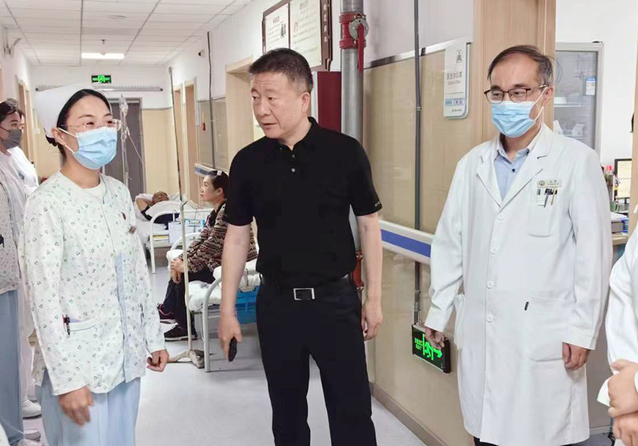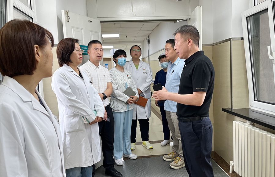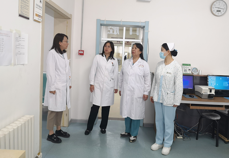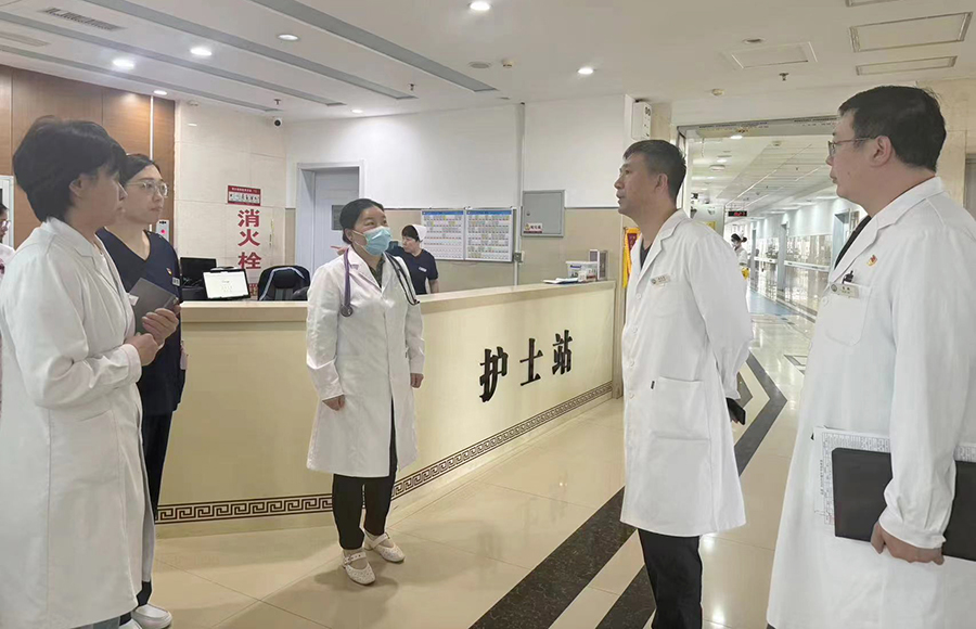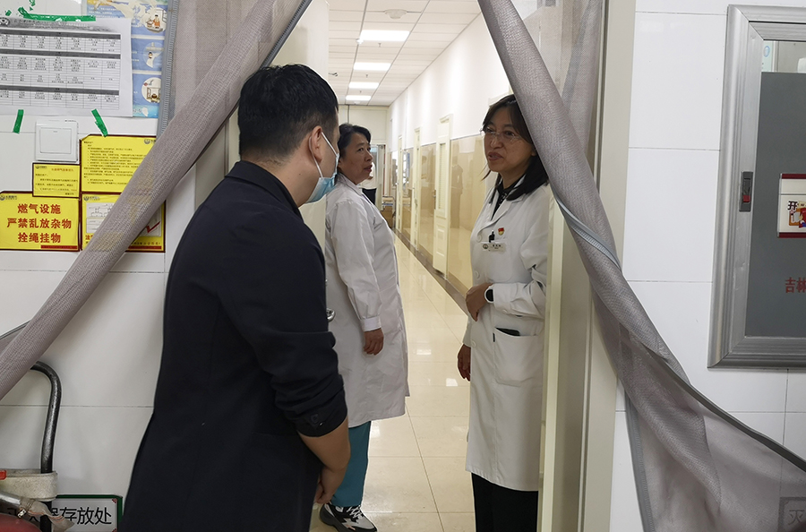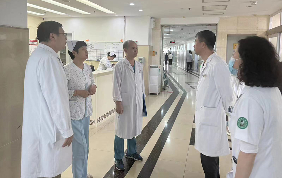 6月7日,杨启光副院长带领相关职能科室负责人到疗区、门诊以及重点岗位进行实地安全巡查。