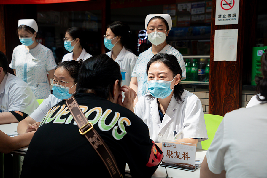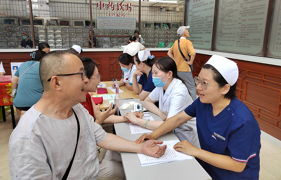 义诊中,来自3个院部多个科室的中医专家为前来咨询的百姓把脉问诊,为大家现场辨证,根据实际情况,制定个性化的贴敷方案,或开具“生化汤”代茶饮。贴敷现场,医护人员细心地为大家贴上“三伏贴”,并详细讲解贴敷时间、选穴位置以及贴敷后的注意事项等,确保大家都能得到最佳的贴敷效果。此外,义诊过程中,针对百姓的健康问题,专家们充分发挥专业优势,认真进行解答,按照不同症状提出合理诊疗建议,并进行用药指导。